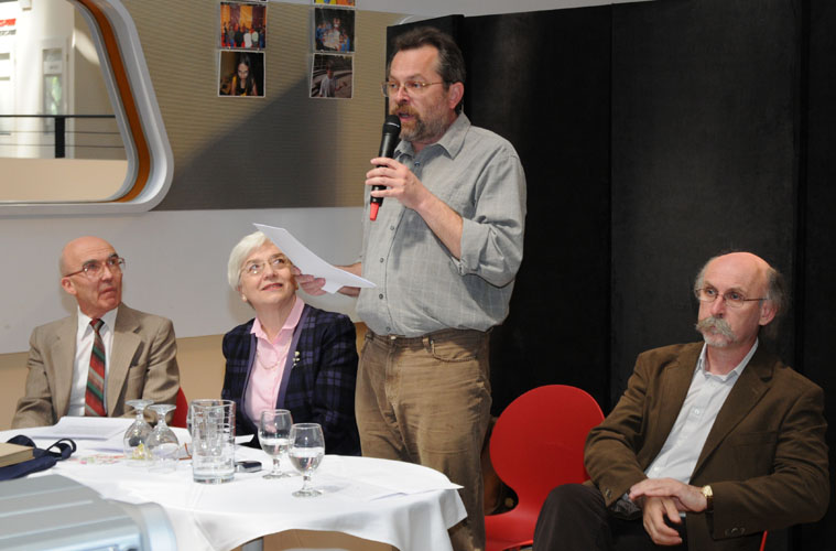 Résztvevők: Horányi Károly, dr. Mázi Béla, dr. Rozsondai Béla (MTAK Kézirattára) és dr. Sajó Tamás (Studiolum)