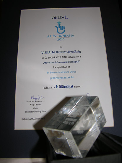 A Könyvtár In memoriam Gábor Dénes digitális gyűjteménye 2010. december 2-án Az Év Honlapja 2010 Különdíját nyerte el. A budapesti Hotel Heliában rendezett ünnepélyes díjátadón a honlapot tervező Visualia képviselői, Ivánka Gábor kreatívigazgató és Simon Erzsébet művészeti vezető vehették át a díjat. A Könyvtárt Tóth Gábor, a Gábor Dénes-dokumentumokat őrző Kézirattár és Régi Könyvek Gyűjteményének osztályvezető-helyettese képviselte.