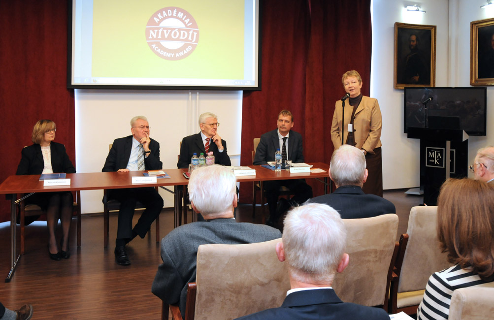 Az MTA által támogatott és az Akadémiai Kiadó gondozásában megjelent tíz könyv, szótár, illetve folyóirat szerzőinek és szerkesztőinek adták át az idei Akadémiai Nívódíjat az MTA Könyvtár és Információs Központban 2013. november 4-én.