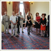 Az avatást követő fogadáson rész vett és beszédet mondott Jonathan Knott, az Egyesült Királyság budapesti nagykövete, majd Váci Sándor építész, az emléktábla kezdeményezője emlékérmeket adott át közreműködőknek, köztük a Kézirattár és Régi Könyvek Gyűjteménye munkatársainak, Babus Antalnak és Mázi Bélának.