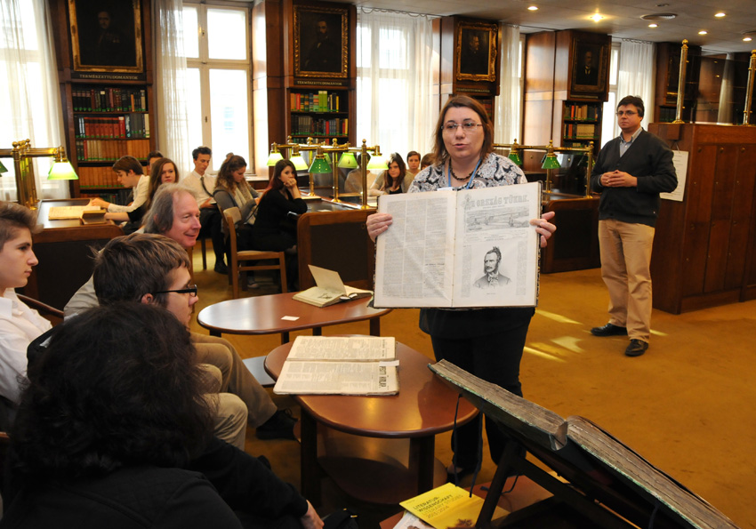 A vendégeket Gaálné Kalydy Dóra főigazgató-helyettes köszöntötte, majd Mekota Ervin építész az Akadémia palotájáról, Haffner Rita osztályvezető pedig a könyvtár történetéről tartott előadást. Ezután a diákok a Keleti Gyűjtemény és a Kézirattár és Régi Könyvek Gyűjteménye kincseivel ismerkedtek meg, és felkeresték az Akadémiai Levéltárat és központi olvasótermünket is.